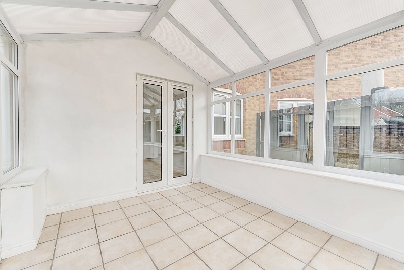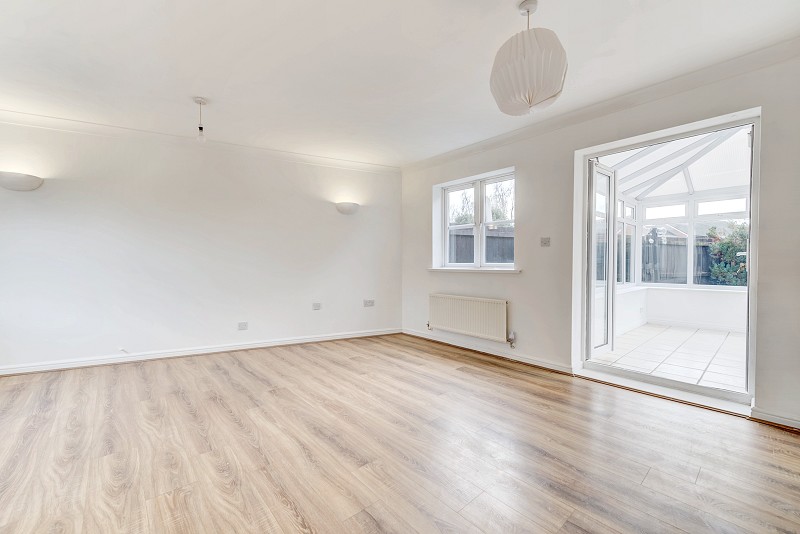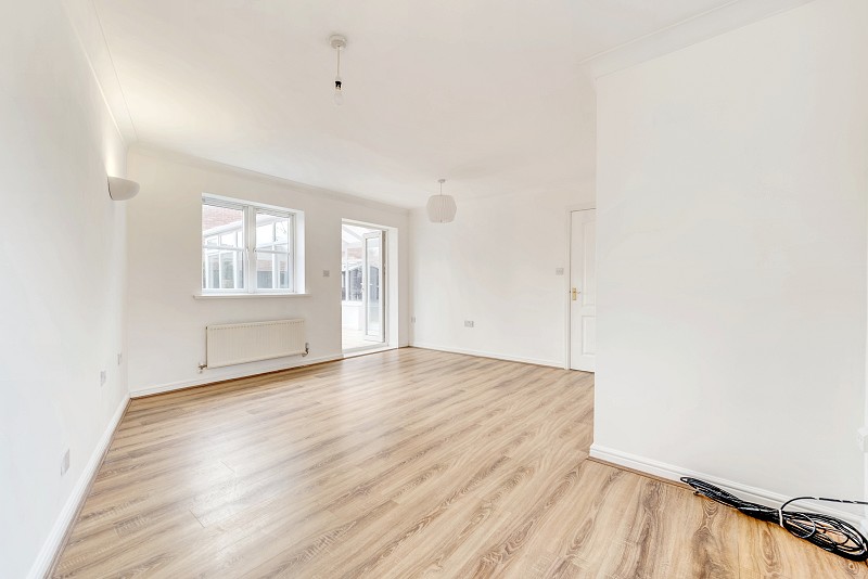 Painted walls, painted ceilings, wood effect laminate flooring, door to storage cupboard, radiator pvc double glazed window to front aspect, radiator, pvc double glazed window to rear, pvc double glazed french doors leading into conservatory.