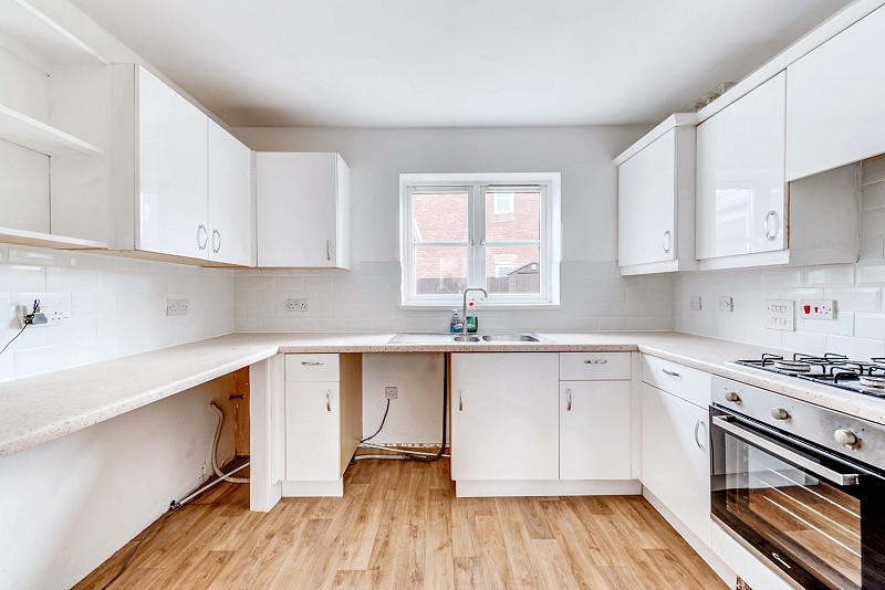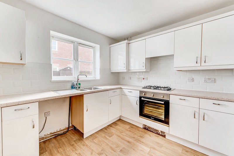 Painted walls, painted ceilings, wood effect vinyl flooring, matching range of wall and base units set on a complimentary work surface. space for fridge/freezer, space for washing machine, stainless steel sink with hot and cold taps and drainer, pvc double glazed window to rear garden aspect, integrated electric oven, gas hob with 4 burners.
