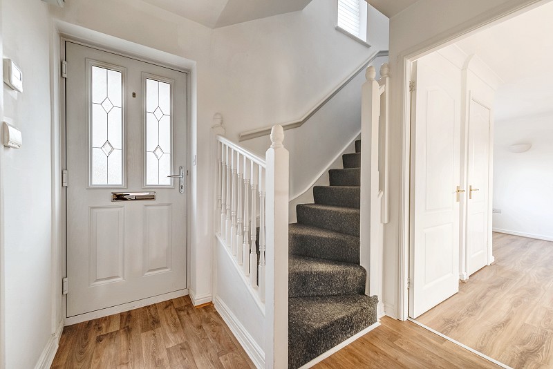 Enter via pvc door with frosted double glazed windows, painted walls, painted ceiling, wood effect vinyl flooring radiator.