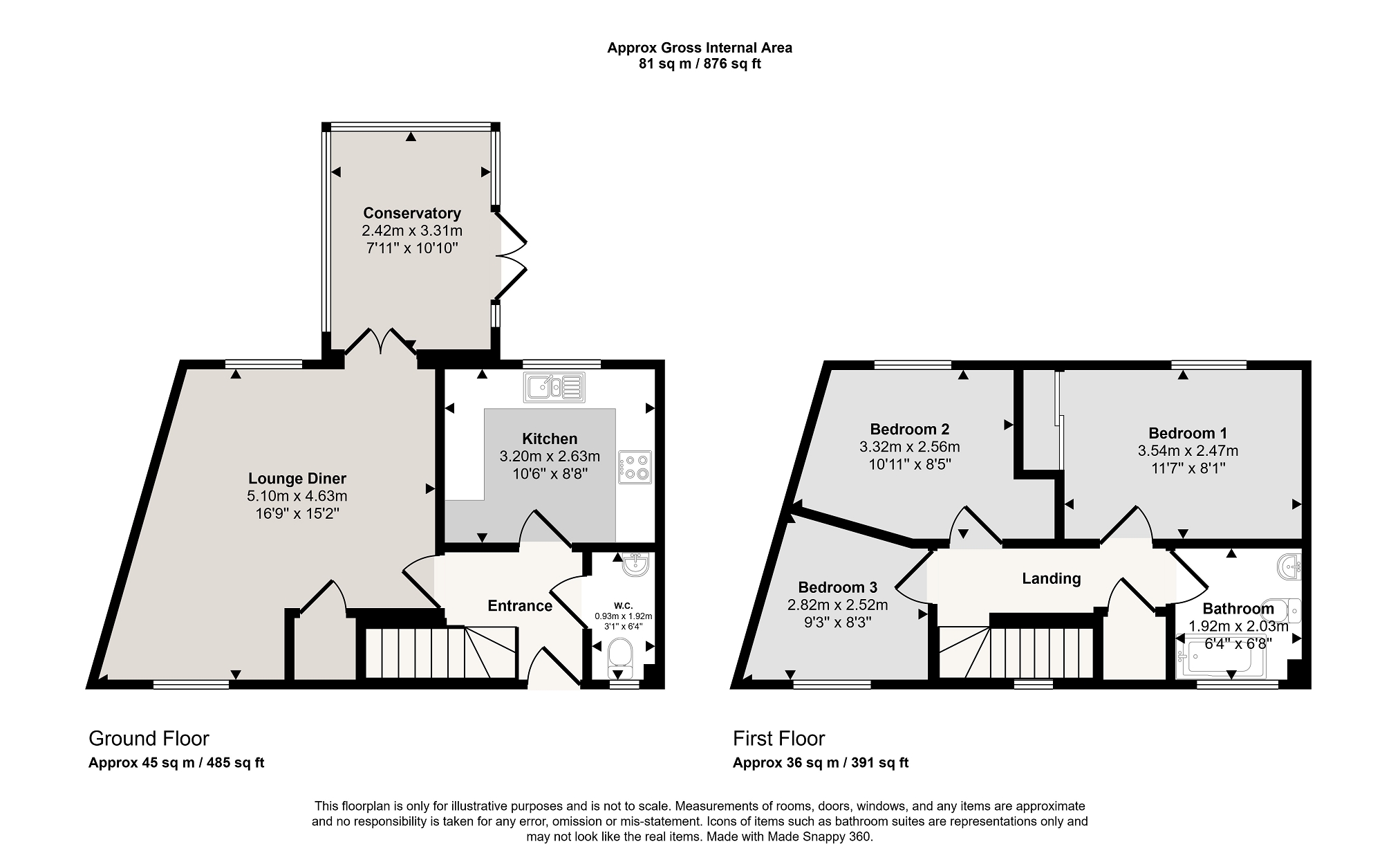 This property is thoughtfully laid out, featuring a spacious living room, a bright conservatory and three good sized bedrooms. The conservatory is located to the rear of the property, offering a versatile space that could be used for dining, entertaining, or simply enjoying views of the garden. A separate kitchen can be found, great for culinary endeavours! Completing the ground floor is the convenient ground floor WC further emphasising the property's practicality. To the first floor, the property boasts the aforementioned bedrooms and family bathroom.