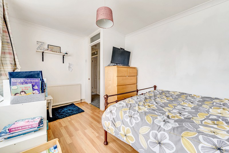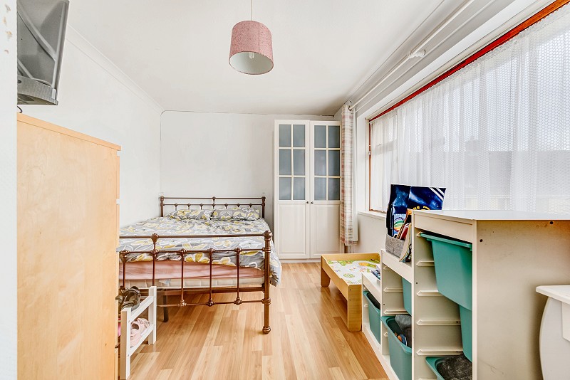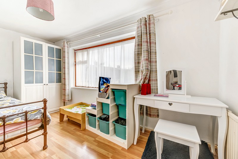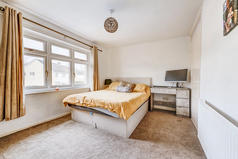 Window to front aspect, carpeted flooring, painted walls and textured ceiling, radiator, fitted storage cupboard.